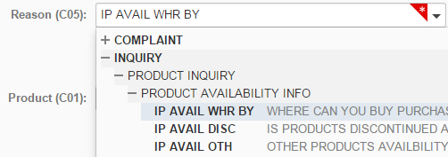 The Category Code Text Search allows you to enter a word into a field on a case. When you tab out of the field (if the category code has been defined using the Category Code Text Search), the system performs a search for the entered words. The system searches all text associated with the code and returns a unique match or a list of matching codes. If a list is presented to the agent, the agent can right-click on any of the codes to show the text search associated with the code. If multiple words are used to search, the system searches for any code that has text that matches any combination of the words entered. The results are returned and are ranked based on how many of the words are associated to the code. For further information on how to set up the Category Code Text Search, refer to "Category Code Text Search Overview" in the Administrator's Guide.