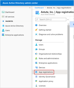 Under the Manage section of menu panel, select App registrations.