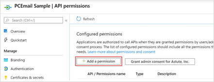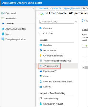 On the Manage section of the menu panel, select API Permissions.