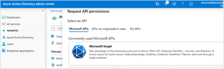 On the Request API permissions window, click Microsoft Graph.