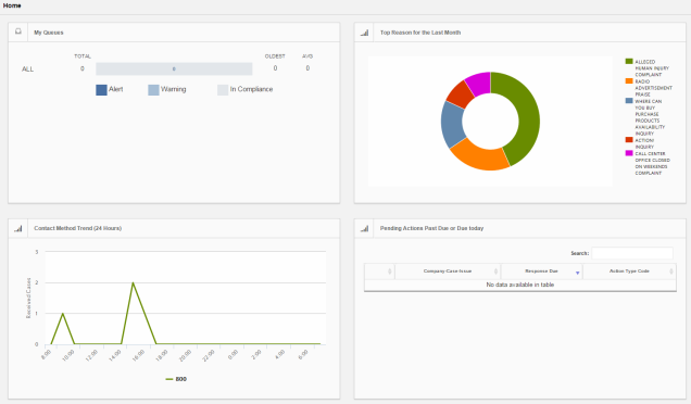• Case Reason: Displays the top reasons for customer contact with your company. The time frame is configurable.