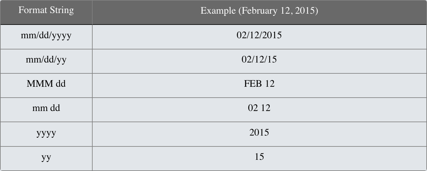 Julian (YJJJ) | These are special date fields that include the day of the year. This is represented by the "JJJ" in the format code. ![]() |