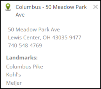 LocatorEspResponseH | Suggested Addresses | This card is used when suggesting relevant addresses. For example, if an agent enters a zip code, then matching nearby businesses are suggested. |
