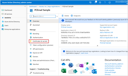 Under the Manage section of menu panel, click Certificates and Secrets.